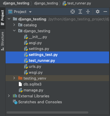 test_runner.py 와 settings_test.py 두 파일을 생성한다.